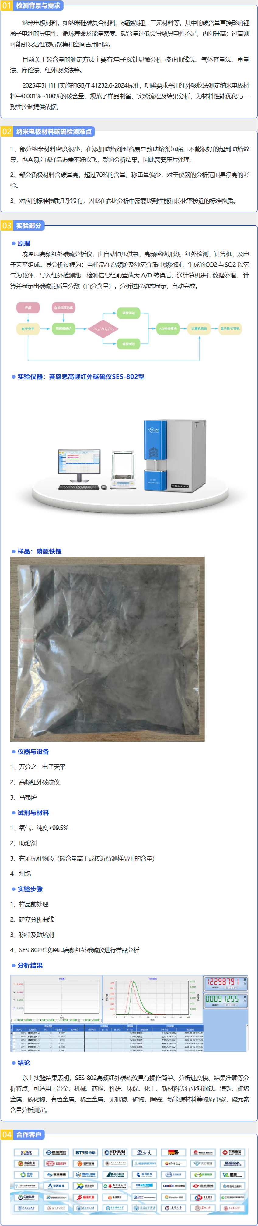 高频红外碳硫分析仪在纳米电极材料碳含量检测中的解决方案